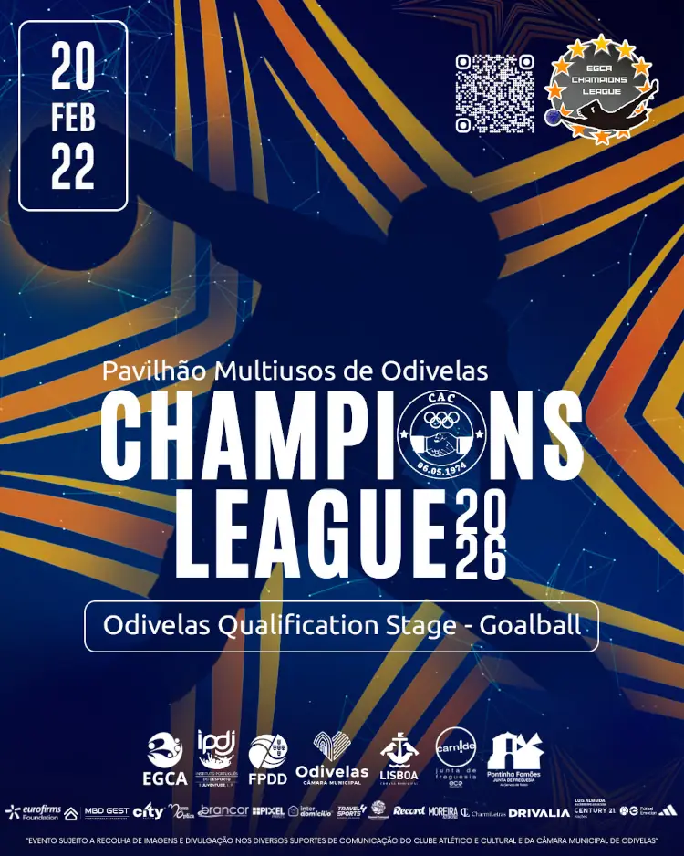 A EGCA Champions League 2026 arranca no Pavilhão Multiusos de Odivelas, com entrada gratuita. Entre 20 e 22 de fevereiro poderá assistir a esta competição de Goalball, que conta com a participação de 8 equipas nacionais e internacionais.